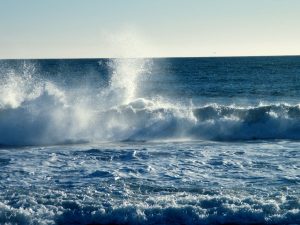 El mar se fue de pronto. Un hombre está gritando. Dice que el agua volverá y al volver nos matará a todos. Está gritando. Quiere